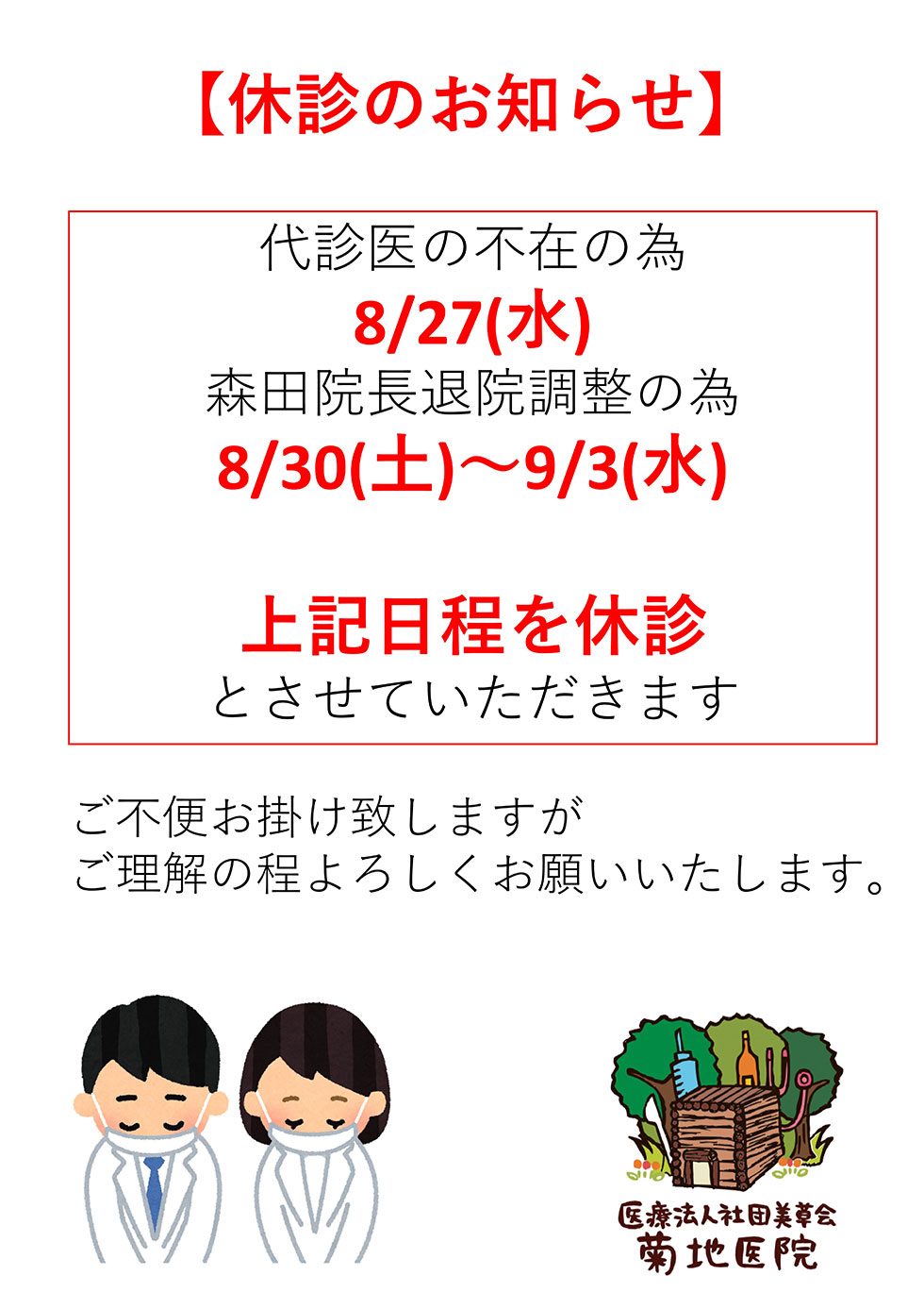 当面の間、毎週月曜・水曜日午後1時~5時までの小児科専門外来を休診させて頂きます。