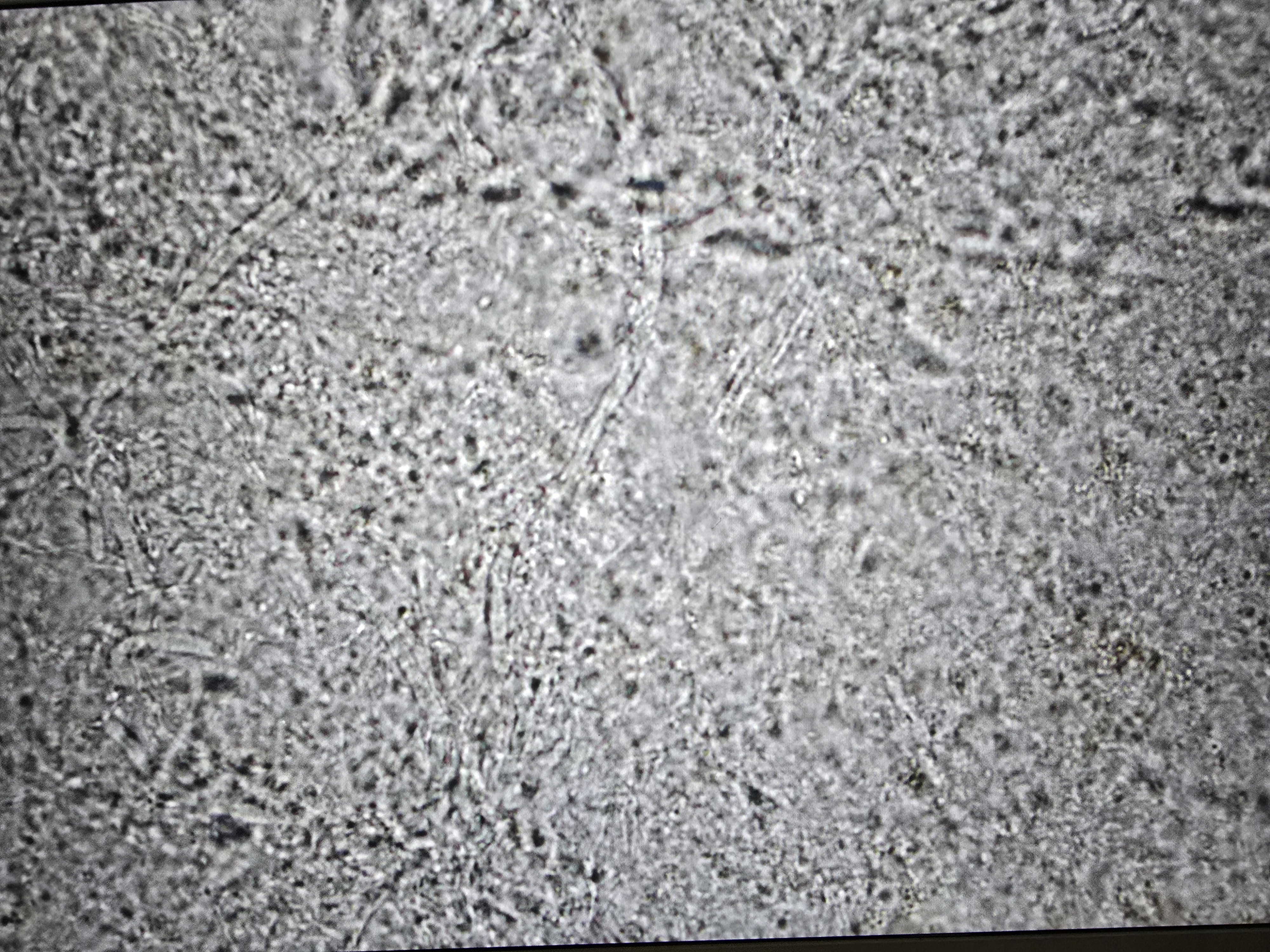 上記画像の半透明の線状のものが水虫の原因である白癬菌です。